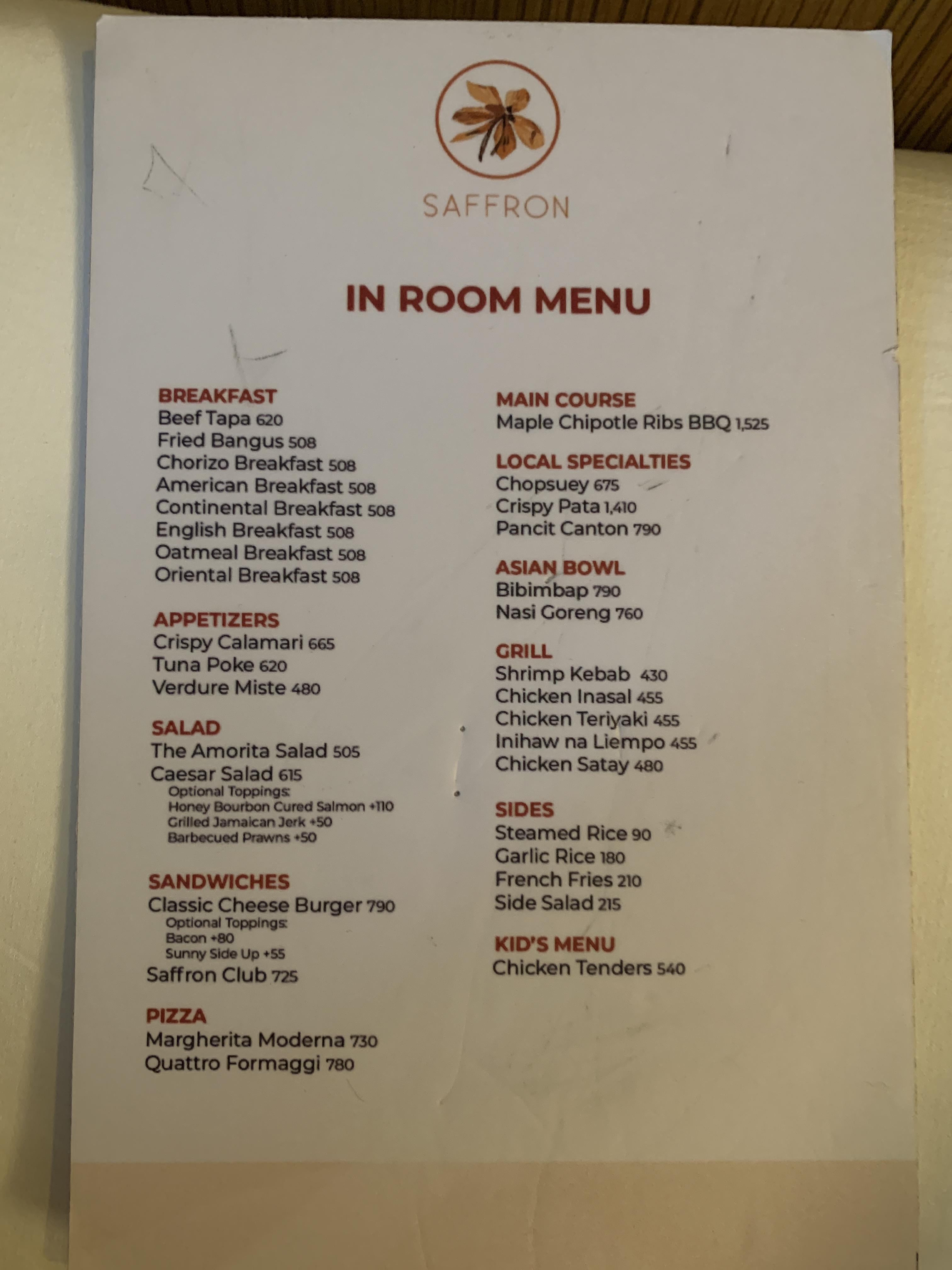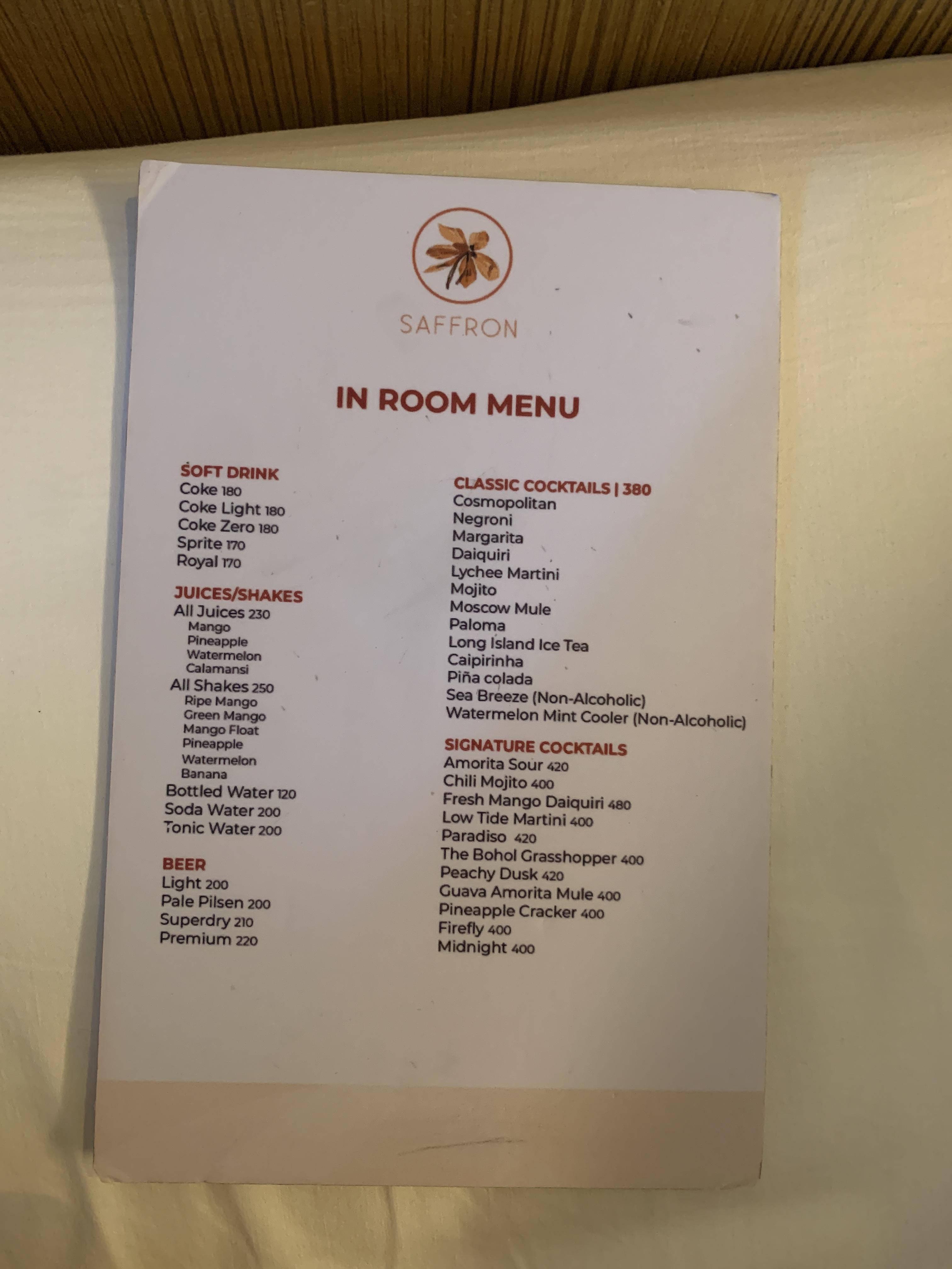 티스토리 보홀 아모리타 리조트 룸서비스 메뉴