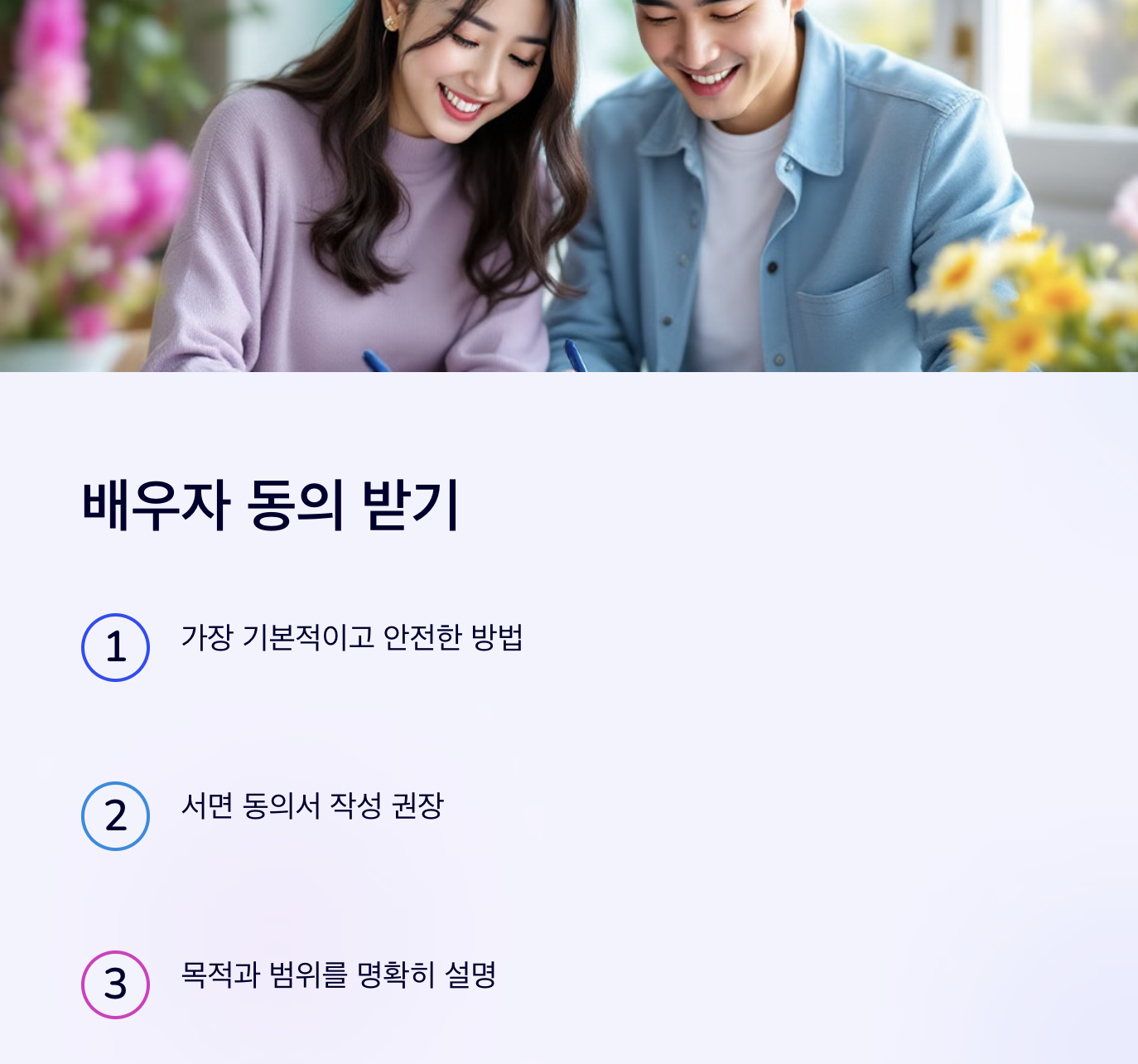 배우자의 금융 정보를 조회하는 가장 합법적이고 간단한 방법은 배우자의 동의를 받는 것입니다. 금융기관이나 신용평가기관에서 정보를 조회할 때는 본인의 동의가 필수이며, 배우자의 정보라도 제3자가 임의로 확인하는 것은 불법입니다.