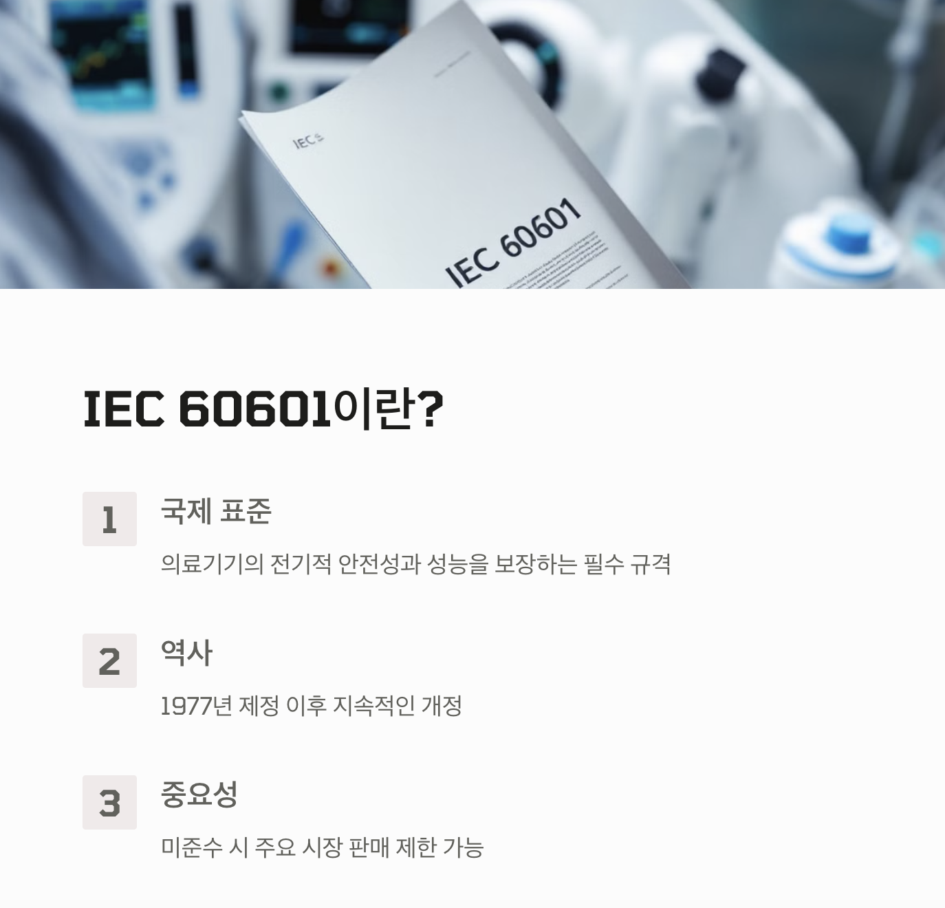 의료기기의 안전은 생명과 직결됩니다. IEC 60601 규격이 중요한 이유, 한 번이라도 깊이 생각해 보셨나요?