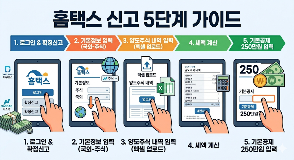 증권사 대행 서비스 기간을 놓쳤거나, 직접 해보고 싶은 분들을 위해 홈택스를 활용한 직접 신고 방법을 아주 상세히 정리해 드립니다.