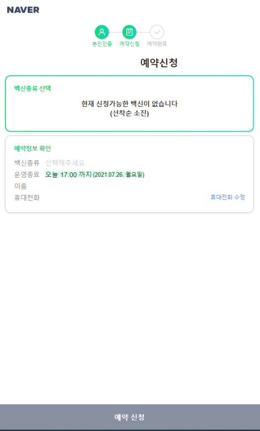 이제 새로고침을 계속 반복하면서 잔여백신이 발생되면 바로 [신청하기]를 눌러서 신청해 줍니다!