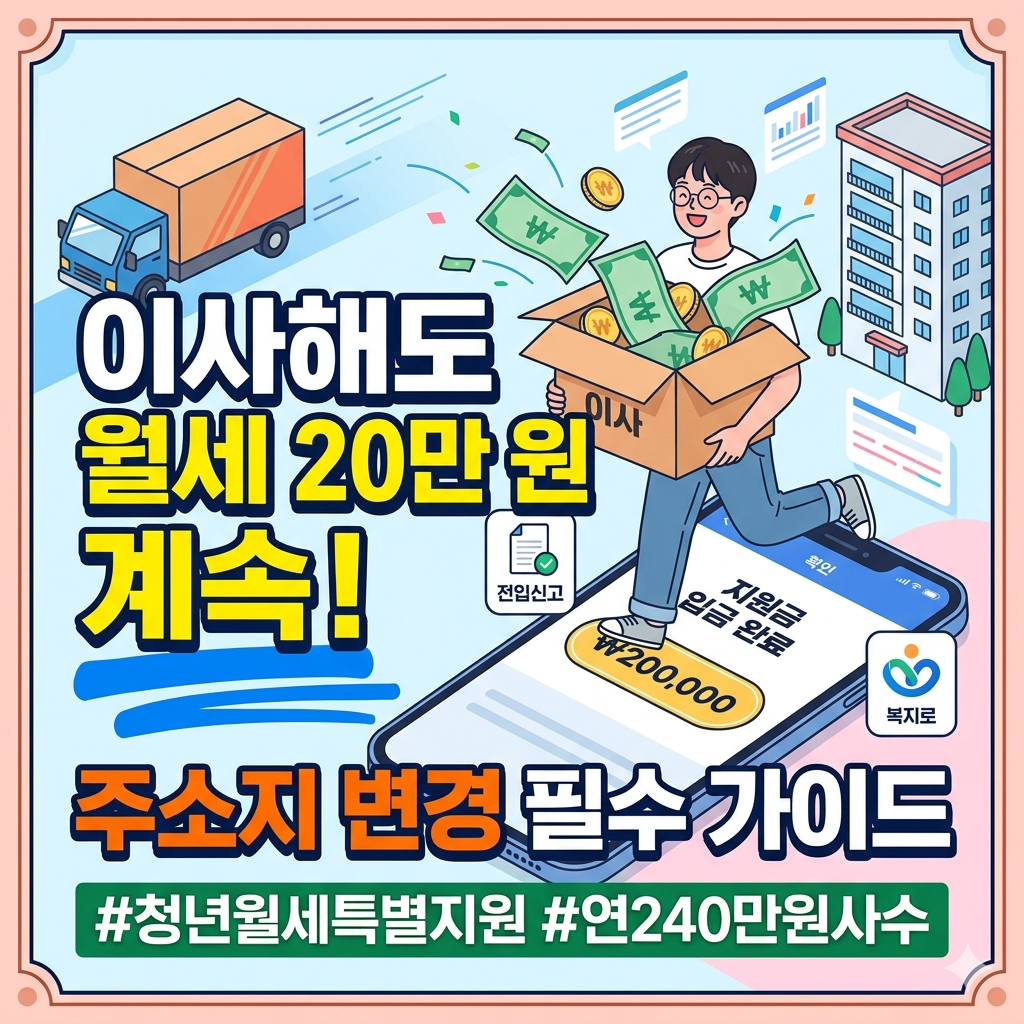 매달 20만 원씩 소중하게 들어오는 청년월세 특별지원금. 그런데 지원 기간 도중 이사를 가게 되면 어떻게 될까요? "주소가 바뀌면 자격이 상실되나?" 혹은 "새로 신청해야 하나?" 고민하시는 분들이 많습니다. 결론부터 말씀드리면, 정해진 절차만 밟으면 계속 받을 수 있습니다!
