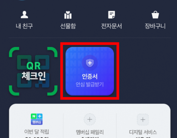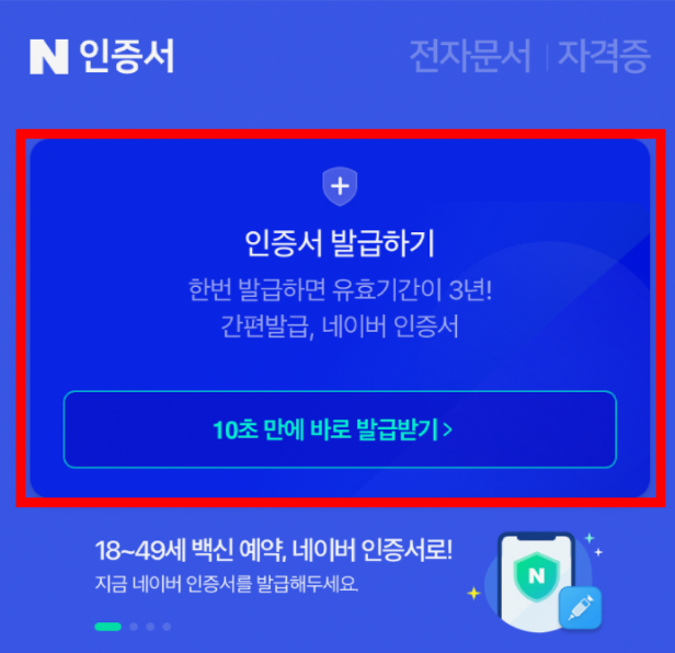 네이버 인증서 화면으로 이동하게 되는데 여기에서 다시 '인증서 발급하기'를 누른다.