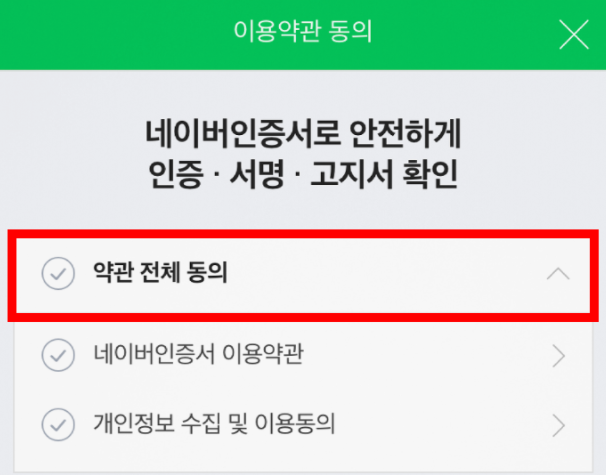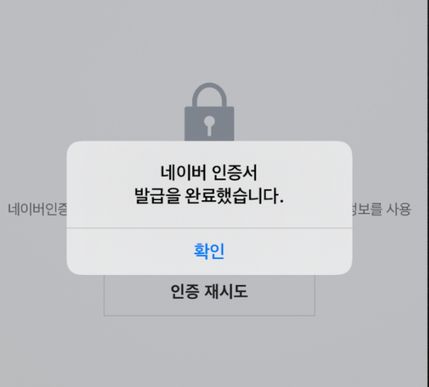이용약관에 모두 동의하면 네이버 인증서 발급을 완료했다는 창이 표시됩니다.