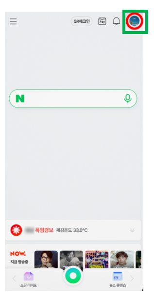 네이버 앱에서 우측 상단에 있는 본인의 프로필 이미지를 누른다.