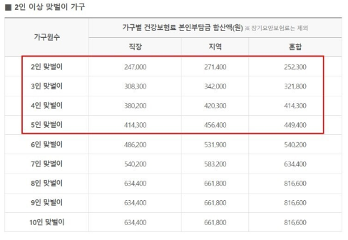 5차 재난지원금 대상 2인 이상 외벌이 가구는 가구원수에 따라서 직장, 지역, 혼합가입자에 따라 대상 금액이 다릅니다.