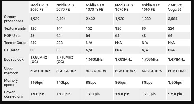 Nvidia RTX 2060을 능가하는 유일한 그래픽 카드는 상당히 비싼 Nvidia GeForce RTX 2070, AMD Radeon RX Vega 56 및 Nvidia GeForce RTX 2080입니다.