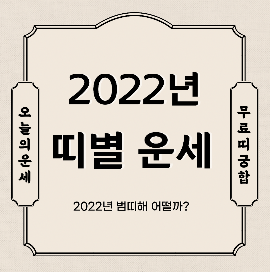 새로운 새해가 오면 많은 사람들이 한 해 동안의 좋은 일이 있고 만사가 잘 풀리길 바라면 운세를 점쳐보고는 합니다. 그래서 2022년 띠별 운세를 알려드립니다. 사람의 운세와 사주는 정해진 것이 없고 본인의 처신과 노력에 따라 변할 수 있는 것입니다. 그저 참고용으로 재미로 보시는 것을 추천 드립니다.