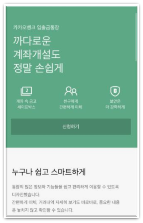 설치를 하셨다면, 최초 카카오 뱅크 어플 입출금계좌를 생성이 필요합니다. 상품/서비스 카테고리를 선택해서 입출금통장을 선택해서 신규 카카오 계좌를 생성해 주시기 바랍니다.
