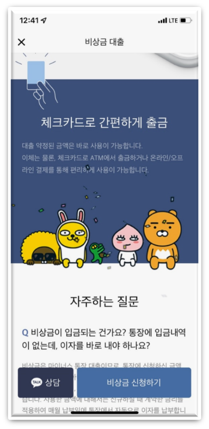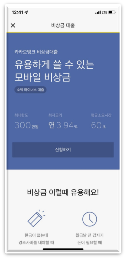 많은 시중 은행에서 여러 방법의 대출이 가능하지만 실제로 대출을 받기 위해서 직접 방문을 해야 하고 구비서류도 준비하는 등 많은 불편 사항들이 있고 시간도 소요됩니다. 그래서 좀 더 간편한 마이너스통장 개념의 비상금 대출을 이용하시는 분들이 늘고 있습니다. 오늘은 쉽고 빠르게 비상금 대출이 가능한 카카오 비상금 대출에 대해서 알려드리겠습니다.
