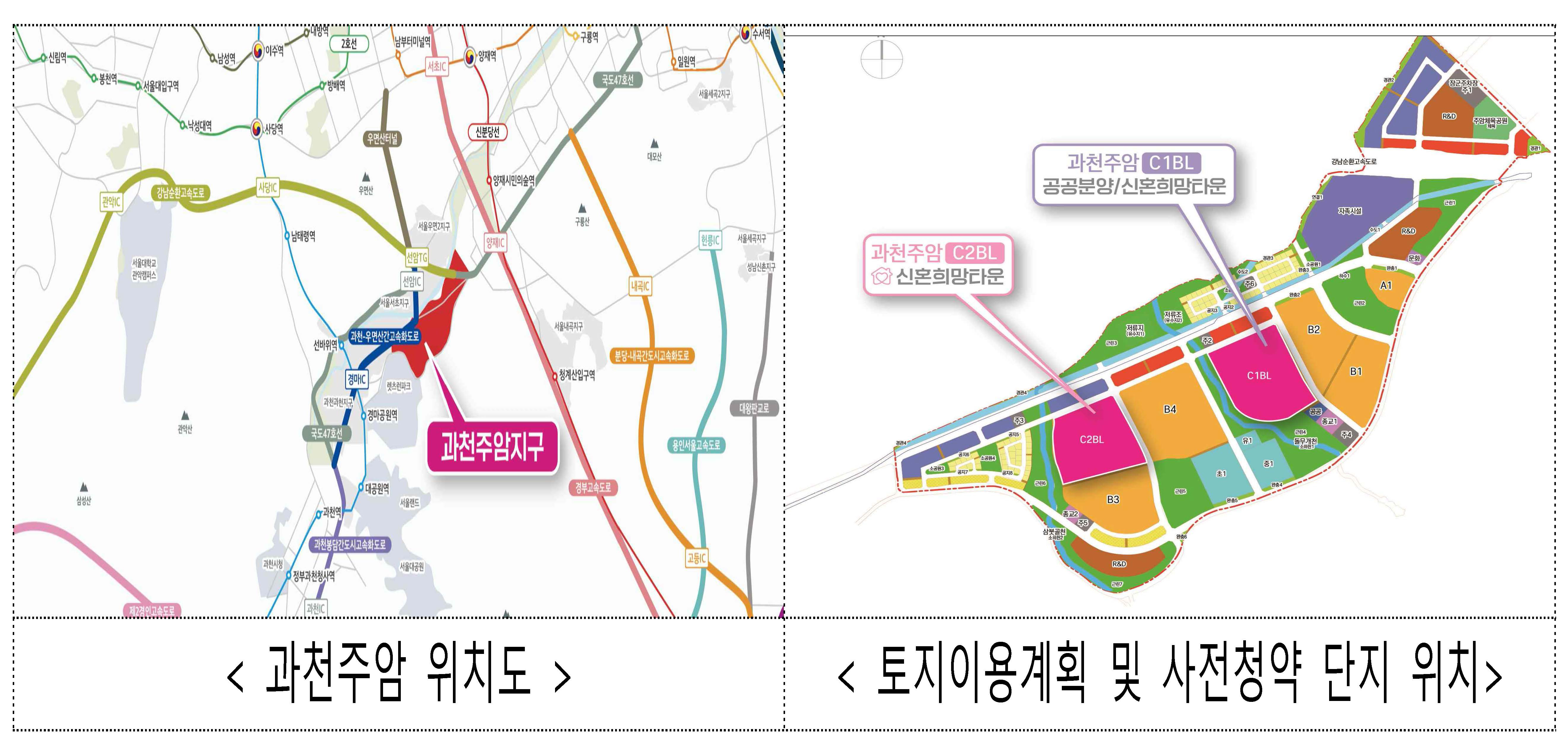- △양재대로, △과천~봉담 간 도시고속화도로 등 광역교통 여건도 양호하다.
