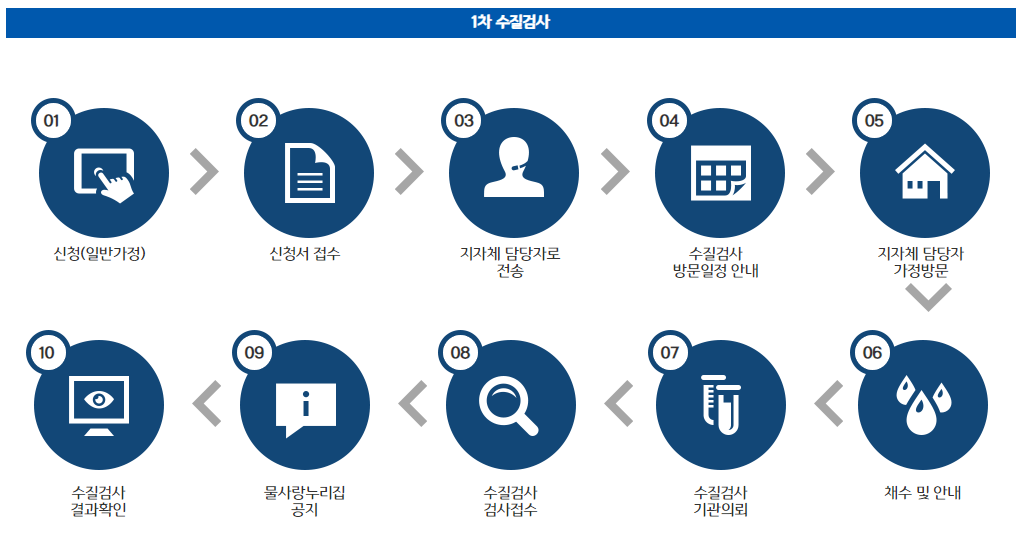 수돗물 수질이 궁금한 국민 누구나 인터넷이나 전화로 수질검사를 신청하면 해당지역 담당공무원이 각 가정을 방문하여 무료로 수도꼭지 수질검사를 실시하고 그 결과를 알려주는 제도입니다.