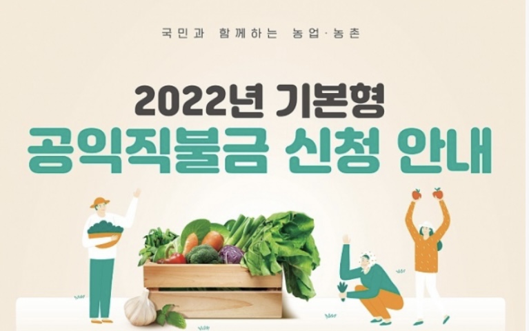 농림축산식품부는 이달 14일부터 5월 31일까지 올해 기본형 공익직불금 신청을 받는다고 3일 밝혔습니다.
