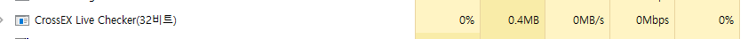 아래는 제 PC의 작업관리에서 검색했을 때 CrossEX 프로그램 하나가 실행되어 0.4MB 메모리를 잡아먹고 있네요.