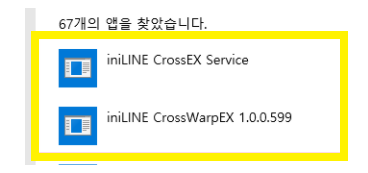 '앱 및 기능 창'을 실행하셨다면 INILINECROSSEXSERVICE 프로그램을 직접 검색해서 찾는 것 보다 'iniline'을 검색하시면 관련된 프로그램이 대부분이 나옵니다.