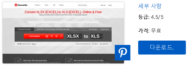 스프레드시트 문서를 위한 무료 온라인 컨버터입니다. 이 웹 사이트를 통해 변환된 파일을 전자 메일로 받을 수 있습니다. 급한 마음에 변환 후 바로 파일을 보내시려면 이 서비스를 이용하시면 됩니다. XLSX 파일을 원하는 형식으로 변환할 수 있습니다.
