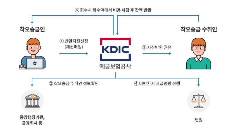 3. 예금보험공사는 확보된 연락처, 주소 정보를 토대로 착오송금 수취인에게 자진반환을 권유하여 회수합니다.