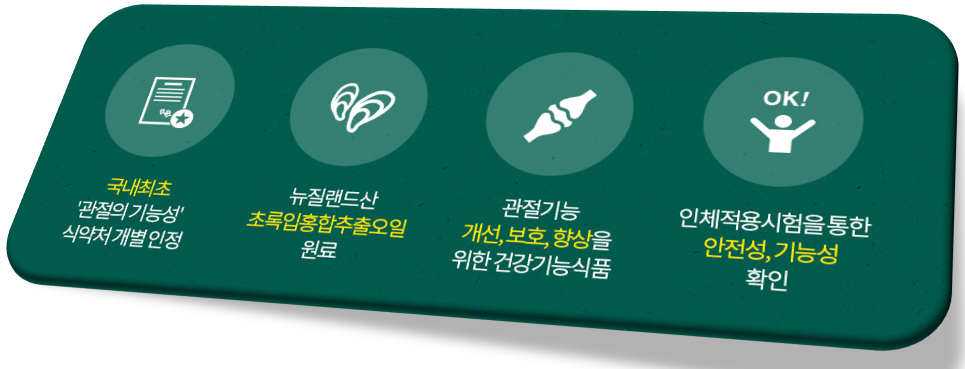 초록입 홍합 추출 오일을 성분으로 만든 관절팔팔 씨스팜은 식약처에서 인증받은 국내 관절 건강 기능식품 입니다. 관절팔팔 씨스팜은 관절 기능성 개별인정형 원료중 5년 연속해서 국내 매출 1위와 8년 연속 생산 1위라는 대단한 기록을 갖고 있으며 제조를 씨스팡이라는 기업에서 했습니다.