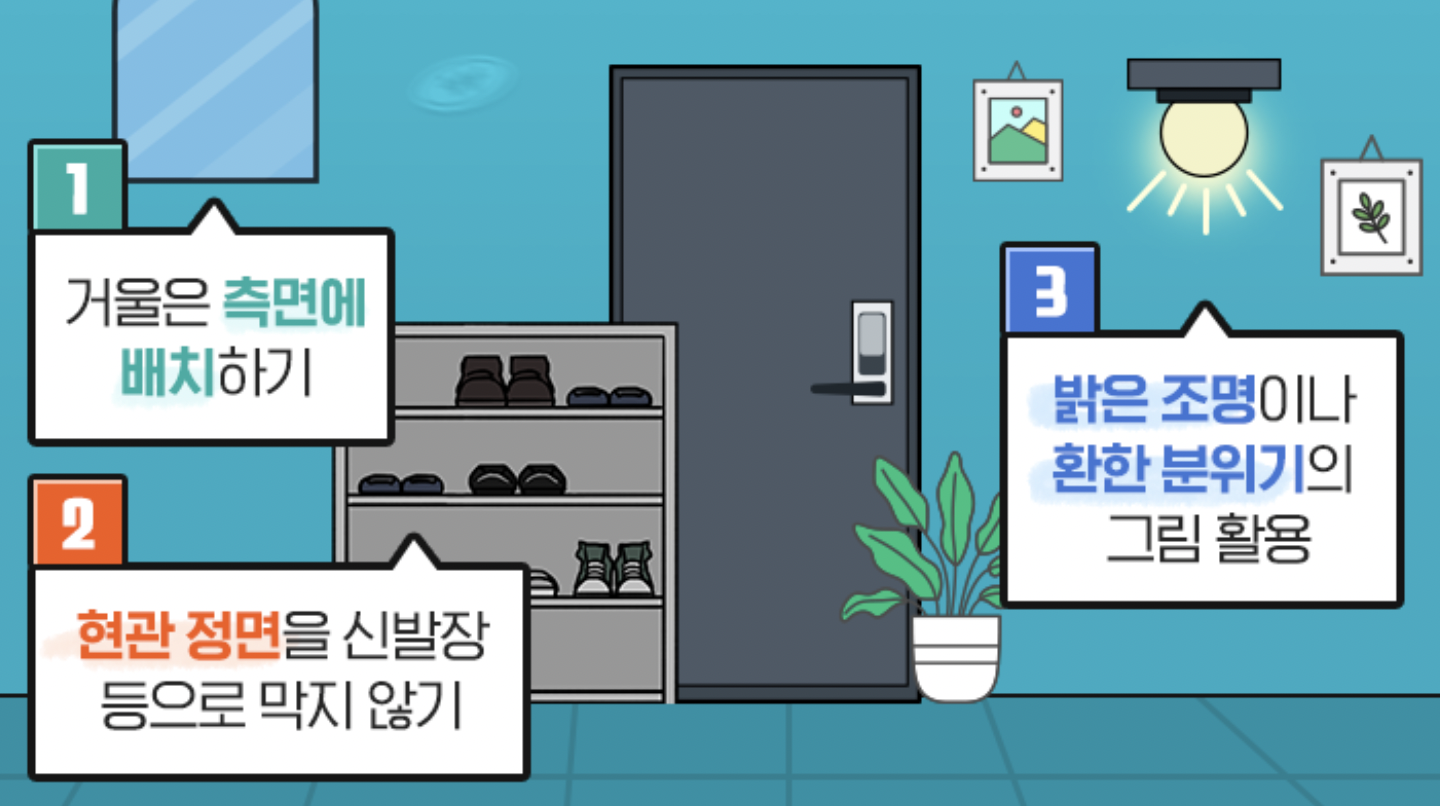 또 현관에 분리수거함이나 쓰레기통을 두면 복이 달아난다고 하니, 최대한 깨끗하게 유지하는 게 좋습니다.