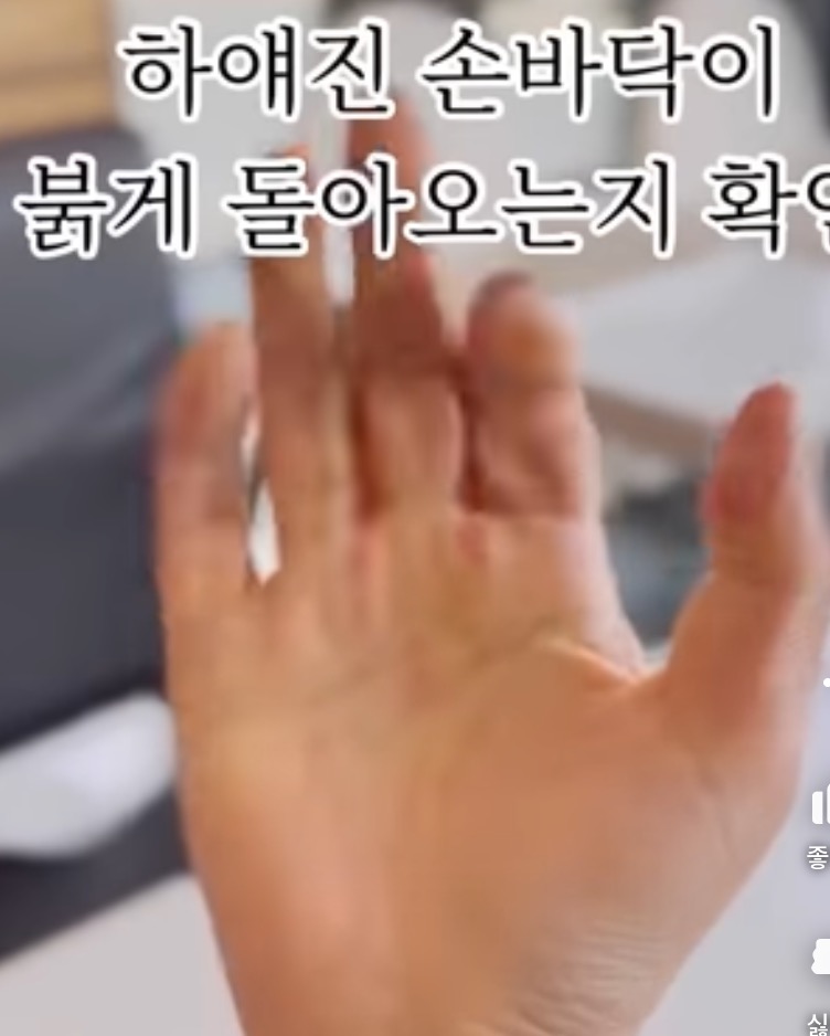3. 손바닥을 폈을 때 하얘진 손바닥이 붉은색으로 돌아오는지 확인해 주세요!